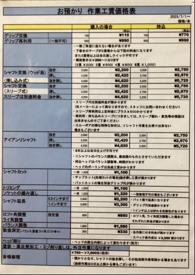 平日 11:30~19:00 日、祝祭日 11:30~17:00 店舗LINEご登録お願いします。 登録用LINEQR↓ 下記から簡単登録できます。 ご登録後、コメント欄に お名前を入力して 頂けると助かります。 LINEご登録後は毎月初めに お休みカレンダーが届きます その他お得な情報も!! お問合せ、ご質問等 ございましたら お気軽にLINEにコメント下さい 24時間書き込みOKです。 尚、お返事にお時間が かかることがございますm(__)m ◆◆取り扱いメーカー◆◆ (あいうえお順) ♦ARTISAN GOLF アーティザンゴルフ インフィニットゴルフ ♦Arch(Hope Ful) アーチ ナチュラル9シリーズ ♦AXIS GOLF アクシスゴルフ ♦ACUSHNET JAPN,INC. アクシネットジャパンインク スコッティキャメロン タイトリスト ボーケイデザイン フットジョイ ♦AVODA GOLF アボダゴルフ ♦EON SPORT イオンスポーツ ジニコシリーズ ♦EDGE WORKS エッジワークス EGシリーズ ♦EMILLID BAHAMA エミリッドバハマ(バハマ) ♦MKトレーディング ミライ ♦LA GOLF エルエーゴルフ ♦遠藤製作所 エポン ♦ODYSSEY オデッセイ ♦OLYMPIC オリムピック DERAMAXシリーズ ♦GLOBERIDE ONOFF(オノフ) ♦KATANA GOLF カタナ ♦Kapas GOLF MEGATON ♦KAMUI WORKS JAPAN レックス&レジーナ ♦Kasco キャスコ ドルフィンシリーズ UFOシリーズ バティック ♦Callaway キャロウェイ ♦GRAPHITE DESIGN グラファイトデザイン ツアーADシリーズ ♦Grandista グランディスタ ♦GRAND PRIX グランプリ エミリッドバハマ ヴァジュール ♦grindworks グラインドワークス イクノイックス ♦Cleveland クリーブランド ♦CRAZY クレイジー ♦KBS ケービーエス TOURシリーズ C-TAPERシリーズ S-TAPERシリーズ ♦cobra コブラ ♦GOLF JAPAN オートフレックス ♦COMPOSITE TECHNO コンポジットテクノ ファイアーエクスプレスシリーズ ♦GTD ジーティーディー ♦Geotech ジオテック ♦ JIGEN ジゲン ♦島田ゴルフ シマダ K’Sシリーズ ♦Jucie ジューシー ♦SYNCAGRAPHITE シンカグラファイト LOOPシリーズ LEXIAシリーズ Zingerシリーズ ♦SCOTTY CAMERON スコッティキャメロン ♦Sports TMC スポーツTMC BGT スタビリティシリーズ RED ZNEシリーズ BRAVAシリーズ ♦Threering スリリング シュハリシリーズ ポールトゥウィン ギアチェン ハルカナ アオサキ カゼトモ ソラトビ ♦Titleist タイトリスト ♦DUNLOP ダンロップ スリクソン ゼクシオ クリーブランド アシックス ♦TaylorMade テーラーメイド ♦TRPX ティーアールピーエックス トリプルエックス ABシリーズ ♦Distance デイスタンス クアレーザー ♦Design Tuning デザインチューニング ベクター メビウスシリーズ ♦DOCUS ドゥーカス ♦TRUETEMPER トゥルーテンパー Dynamic Goldシリーズ エアロテックシリーズ プロジェクトXシリーズ ♦NIPPON SHAFT 日本シャフト N.S.PROシリーズ バルカヌスシリーズ ♦ニューアートスポーツ CRAZY ♦NEXT GOLF ネクストゴルフ 鎬(しのぎ)シリーズ Rafale(ラファール)シリーズ ♦BALDO バルド ♦Basileus バシレウス ♦BUZZ バズ テラエンタープライズ TGシリーズ PROTOTYPEシリーズ ♦PING ピン ♦FOURTEEN フォーティーン ♦Fujikura フジクラ スピーダーシリーズ ベンタスシリーズ ♦FUSO DREAM フソウドリーム KS2シリーズ ♦藤本技工 フジモトギコウ Break Common Sense ♦BRIDGESTONE ブリヂストン ♦PRGR プロギア RSシリーズ eggシリーズ ♦BETTINARDI ベティナルディ ♦HONMA 本間ゴルフ TWシリーズ BERESシリーズ ♦マスターズ アストロシリーズ ♦MAJESTY マジェスティゴルフ マルマン ♦MYSTERY ミステリーゴルフ CFシリーズ ♦MIZUNO ミズノ ベティナルディ Mizuno Proシリーズ JPX シリーズ ♦MITSUBISHI CHEMICAL 三菱ケミカル ディアマナシリーズ テンセイシリーズ ♦MINERVA GOLF ミネルヴァゴルフ ヴァリエンテシリーズ ヴァンガードシリーズ ♦muziik ムジーク On The Screwシリーズ XSPIREシリーズ ♦YAMAHA ヤマハ RMXシリーズ インプレスシリーズ ♦UST Mamiya USTマミヤ ATTASシリーズ LIN-Qシリーズ AUGAシリーズ Recoilシリーズ ALL INシリーズ PROFORCE シリーズ ♦YONEX ヨネックス EZONEシリーズ ♦RAZZLE DAZZLE ラズルダズル CSシリーズ ♦RYOMA GOLF リョーマゴルフ MAXIMAシリーズ ♦Lynx Golf リンクスゴルフ ♦Roots Golf ルーツゴルフ AERMET ACEシリーズ ZIPシリーズ Jinシリーズ ♦REVE レ―ヴ IMPACT BORON LOVEGUN DYNAMITE BREAKOUT LEVOLVER ♦ROYAL COLLECTION ロイヤルコレクション TM-Xシリーズ AM-Xシリーズ ソナテック ♦Waoww ワオ BANG RVシリーズ ♦WORKS GOLF ワークスゴルフ |